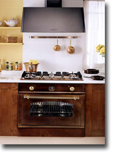 Другой тип кухонной вытяжки по принципу действия это вытяжная вентиляция. В такой вытяжке воздух втягивается над кухонной плитой и выводится в систему вентиляции с помощью воздуховода. Форма такой кухонной вытяжки преимущественно купольная. Купольные вытяжки имеют большой ассортимент размеров и форм. Как понятно из названия, они имеют форму купола. Подсветка у вытяжки может быть полезна - света над плитой много не бывает. Кнопки управления могут быть сенсорными псевдо сенсорными и просто кнопками или наряду скнопками управления вытяжка может быть спультом дистанционного управления. Необходимая мощность вытяжки зависит от размера кухни и дожна обеспечить необходимый воздухообмен. Размер вытяжки подбирается под варочную поверхность при этом чем больше размеры вытяжки тем выше ее можно расположить. Все вытяжки при работе шумят в той или иной степени, уровень шума зависит от мощности вентиляторов, формы и размеров воздуховодов комфортным считается если шум не превышает 40дБ. |